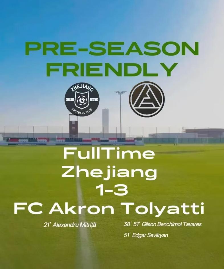 浙江队1-3俄超陶里亚蒂阿克隆